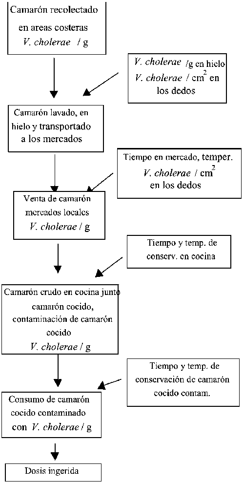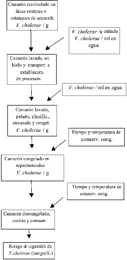FIGURA 6.13 Modelo para evaluación de exposición a V. cholerae en camarones para mercados internacionales.