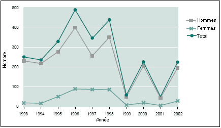 La forte baisse du nombre d’étudiantes s’inscrivant à une formation technique en foresterie est un autre phénomène préoccupant. Les inscriptions d’étudiantes semblent avoir amorcé une tendance à la hausse en 1994, mais ont subi un sérieux revers à partir de 1998, et ne se sont pas reprises depuis. Cela est d’autant plus regrettable que l’on encourage une plus grande participation des femmes aux activités de développement, en particulier à la plantation d’arbres dans les fermes.