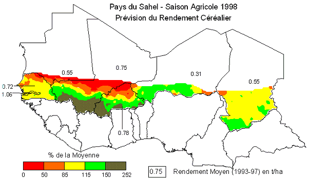 sorgho) dans Sahel pour la saison agricole 1998, indiquée en pourcentage du