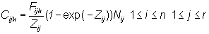 Cijk is the number of age class j fish in the catch of fishery k in year i,