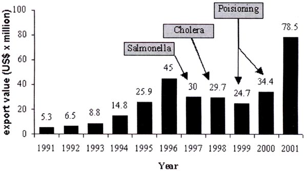 This is what happened in Tanzania, where the researcher lacked motivation and the quality of the output was weaker, despite intense supervision. Involvement of local fishing communities could help resolve this problem. The poor conformity of the processing factory data were because the EU imposed an export ban on Nile perch into Europe for most of 2000 because of problems with fish poisoning and the factories were operating at very low throughput (Fig. 5).