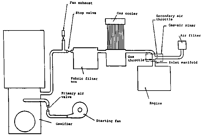 Figure 3.8 Schematic of the gasifier system used for a Massey Ferguson farm tractor
