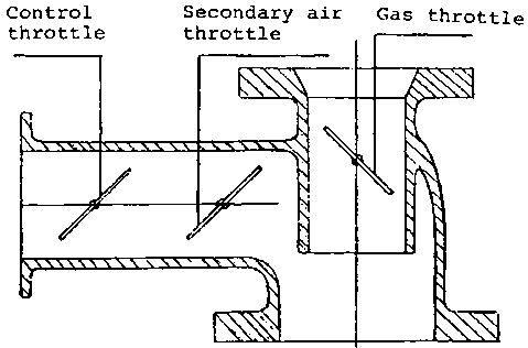 Overheating of the pump was avoided by leading the excess flow to the fuel tank as described in section 3.1.4. A radiation shield was also mounted to protect the pump and the fuel filter from being heated by the hot gasifier which is mounted on the same side as the pump. 1/ The injection pump was fitted with an adjustable stop for the engine stop-lever, close to the zero injection position. With the lever at this stop the injection flow is less than required for idling, which means that the engine can be stopped just by closing the gas throttle even though the diesel flow cannot be shut off completely. The stop lever can also be adjusted by the driver to a full diesel position, enabling starting and driving on diesel oil, if required.
