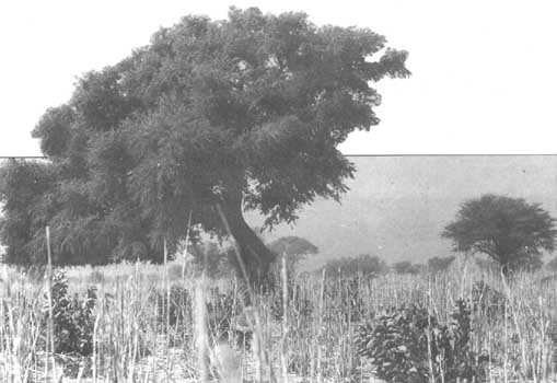 Another species that improves the soil but shades out the crops and has to be killed is the thorn tree, kurugu. Both karanyi and kurugu leave the land with good organic matter under them. The grass, dodo, that often grows under karanyi and kurugu is also recognized in its own right as an indicator of good soil. It is noteworthy that these trees are so vigorous that they would not be suitable for alley cropping or other more formalized methods of agroforestry.