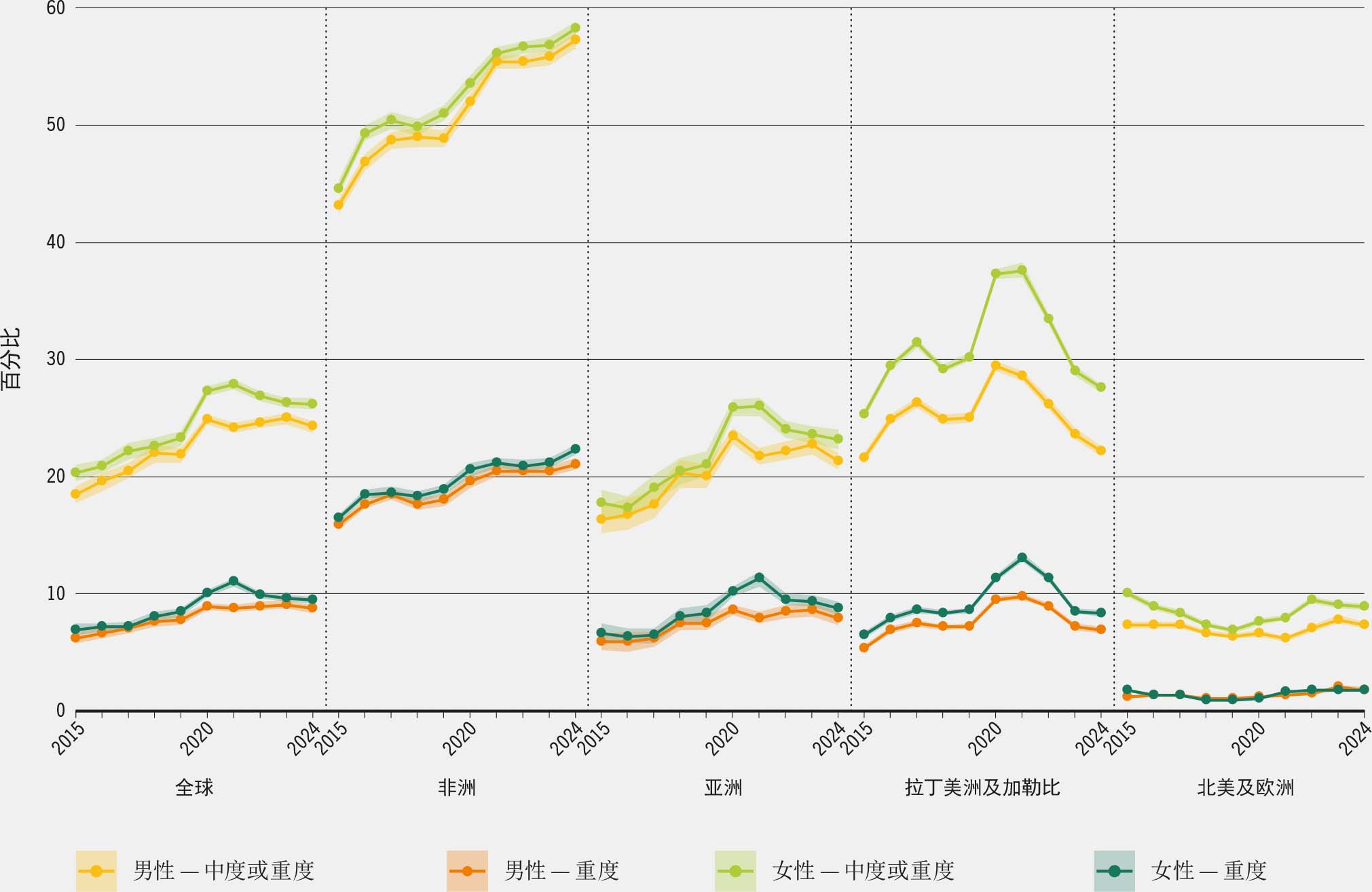 图2.4 全球粮食不安全水平2021年至2024年逐步下降,拉丁美洲及加勒比进展显著