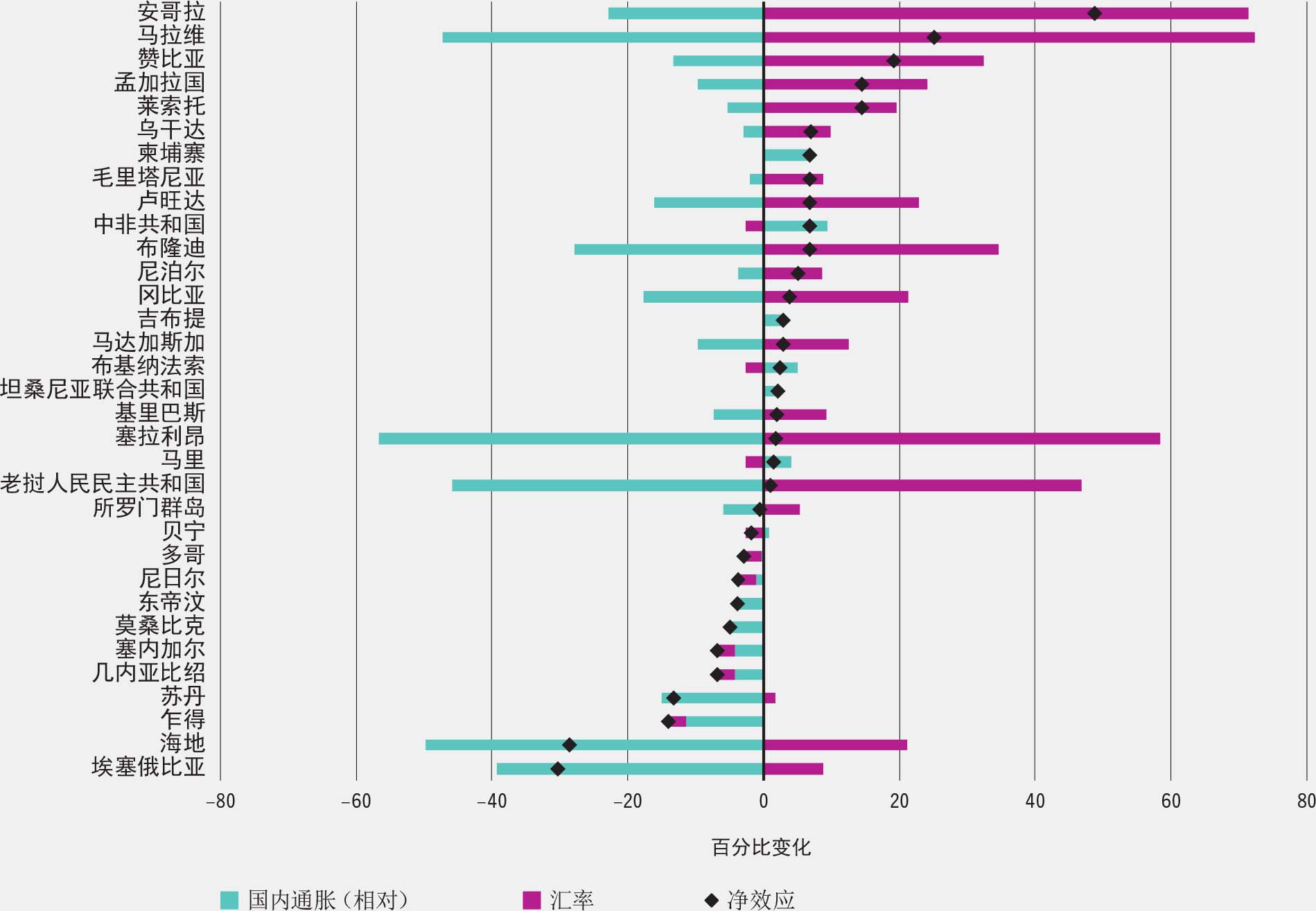 图A 汇率波动与国内通胀对最不发达国家玉米价格的净效应