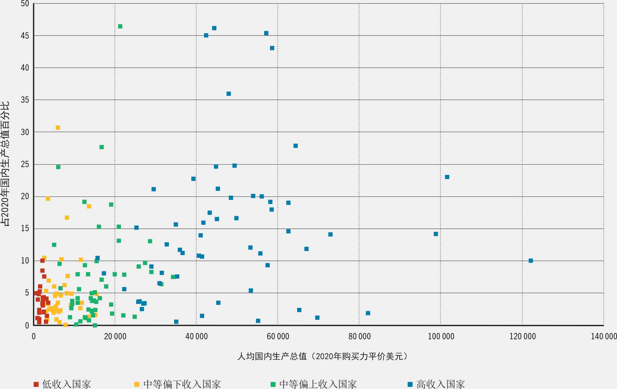 资料来源:财政应对举措数据参见:国际货币基金组织。2021。应对COVID-19疫情的财政政策数据库:财政监测数据库(各国应对COVID-19疫情的财政举措)。[2025年3月1日访问]。https://www.imf.org/en/Topics/imf-and-covid19/Fiscal-Policies-Database-in-Response-to-COVID-19;人均国内生产总值数据参见:世界银行。2025。世界发展指标。[2025年3月1日访问]。https://databank.worldbank.org/source/world-development-indicators。许可:CC-BY-4.0。