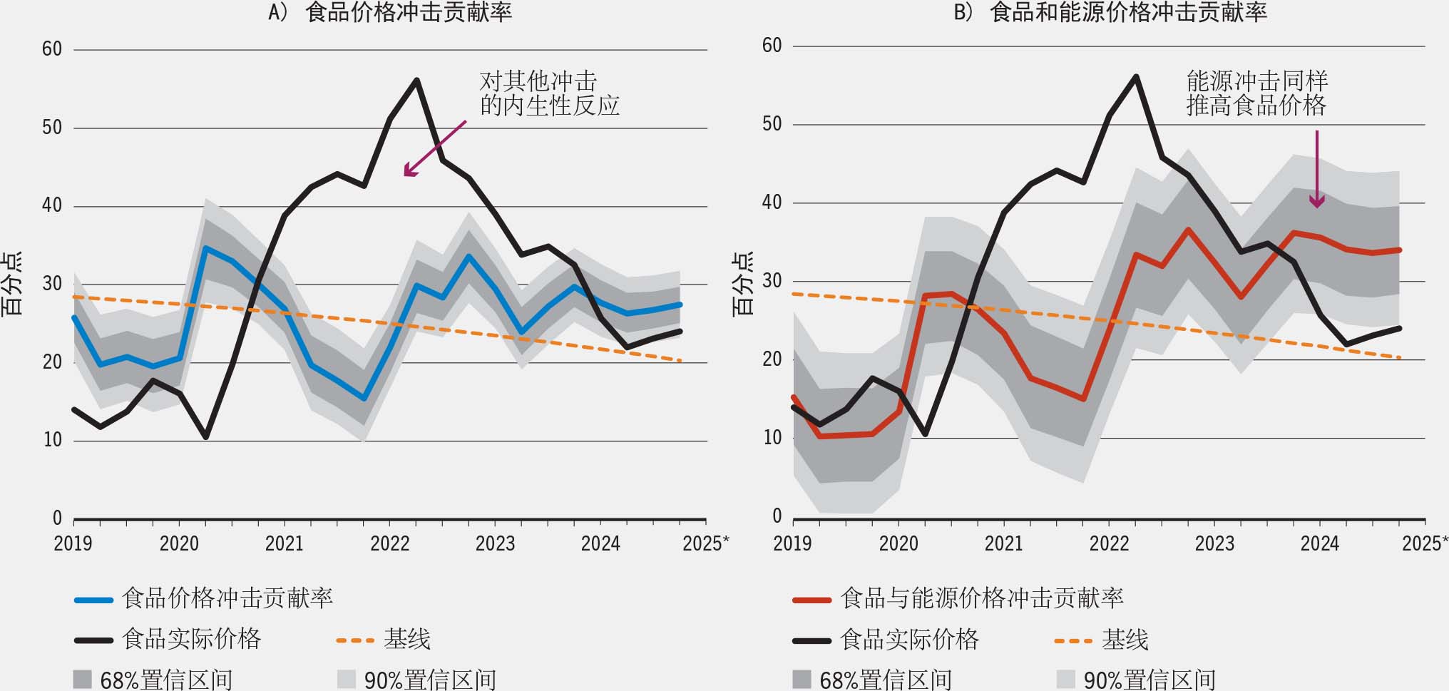 资料来源:Peersman, G.(即将出版)。《认识2019冠状病毒病疫情后的食品高通胀问题 — 〈2025年世界粮食安全和营养状况〉背景文件》。粮农组织农业发展经济学工作文件,第25-06号。罗马,粮农组织。