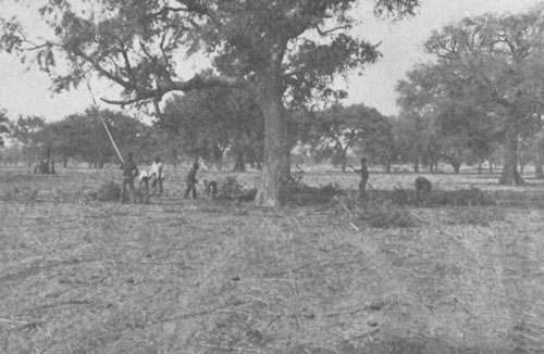 Cultivos agrícolas sobre tierra de montes de A. albida: algunos árboles fueron mochados para alimentar el ganado (foto Y. Roederer/CTFT)