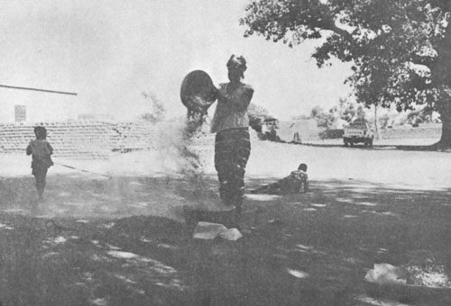 Cosecha de vainas de Acacia albida del suelo, después del desmoche de las ramas (foto Y. Roederer/CTFT)