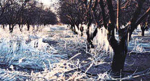 Ice accumulation from the use of under-tree sprinklers in Northern California (photographer: Richard L. Snyder)