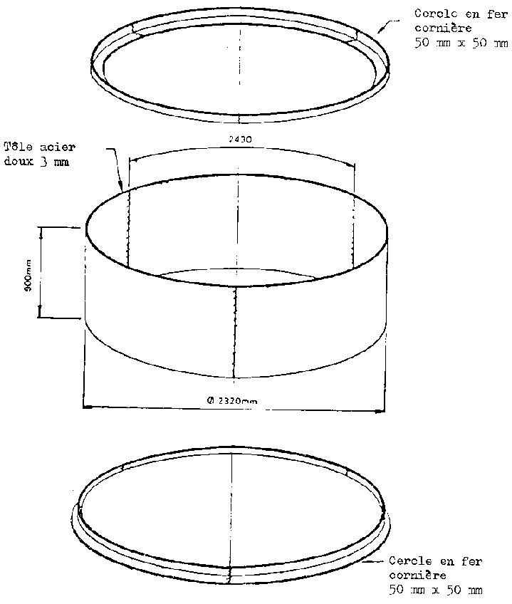 Soit tôle de 3 mm, soit tuyau d'acier de ø 120 mm |