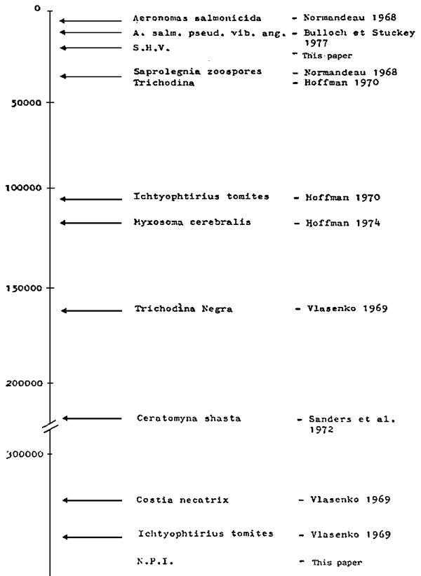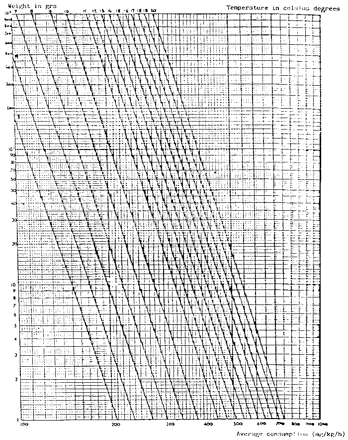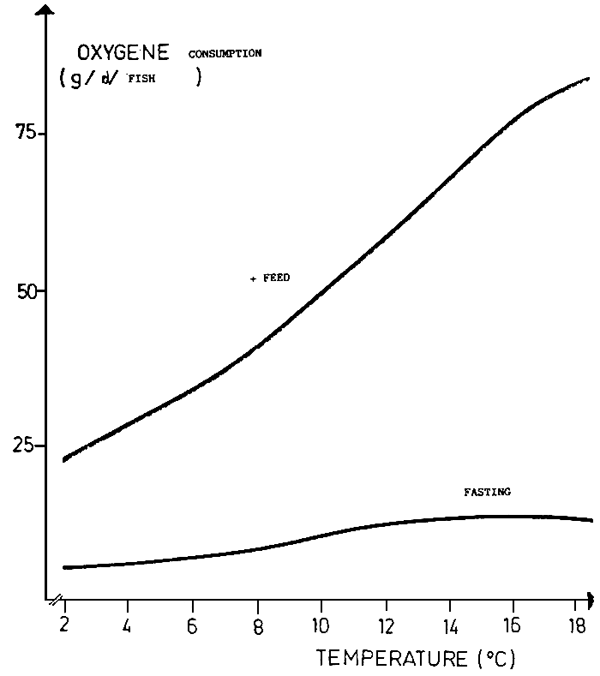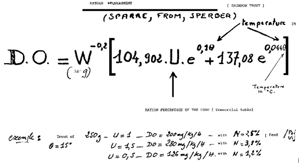 Thus for a “trout” type (40 % of protein) it is remarked that 300 g. of dissolved oxygen is necessary per kilo of food.
