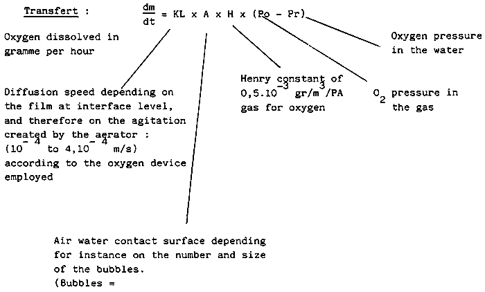 - The quantity of oxygen which must be introduced into the water so as to satisfy the requirements of the animals (and eventually the oxydation of the wastes), in terms of gas flow (Kg of oxygen per hour).