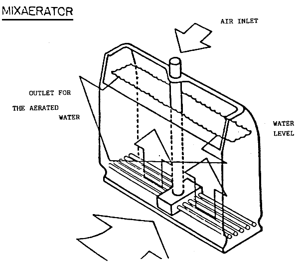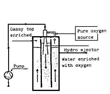 | Classic aerator (Turbines with specific supplies of 0,8 Kg 02/KWH) | Temperature : 20° C Oxygen tenor of water saturation : 8,88 mg/l | Pure oxygen devices (Hydro-ejectors under watertight covers) | ||||