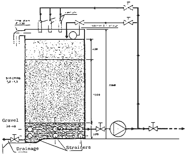| Filtration tank erected | Bacterial filtration module Front view of the unassembled parts of the tank |