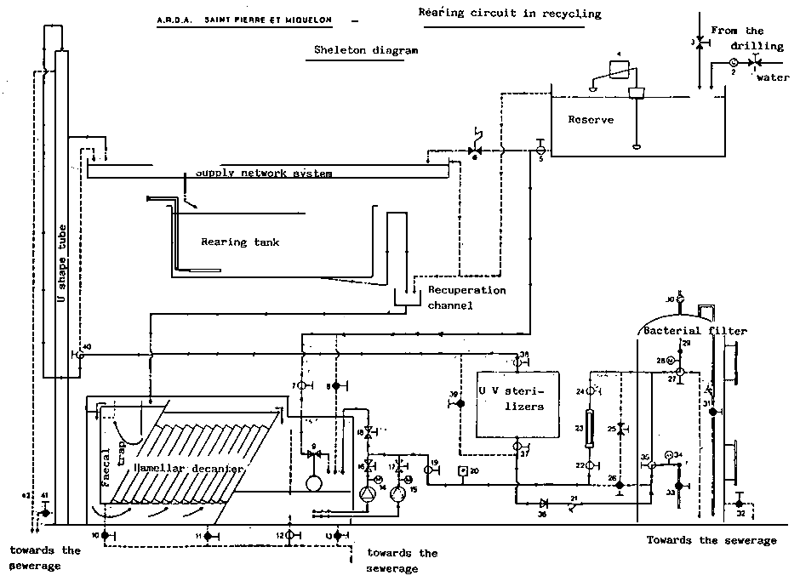 Maintaining the rearing volumes emplies maintaining a flow which will compensate natural (evaporation and infiltration) and volontary losses, water renewals due to sanitary treatments, cleaning out of the facilities.