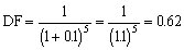 For example, if n = 5 and r = 10%, the value of discount factor will be: