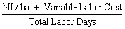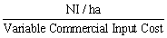 Economic evaluation of the technology can be carried out using various criteria: money, energy, labor value, etc. The only requirement is that the criteria be quantifiable and possess a common denominator such that any input or output can be measured on the same basis. Non-quantifiable criteria can also be included to weigh different options, for example to maximize net income subject to minimum soil degradation. Specifically, for evaluation at the farmer's level, outputs and inputs of a production system are valued as follows (adapted from Perrin et al. 1976):