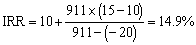 where NPV1 corresponds to interest rate of r1 and NPV2 to interest rate of r2. Taking the value of r1 as 10% and r2 as 15%, the IRR for the alley farming may be computed as: