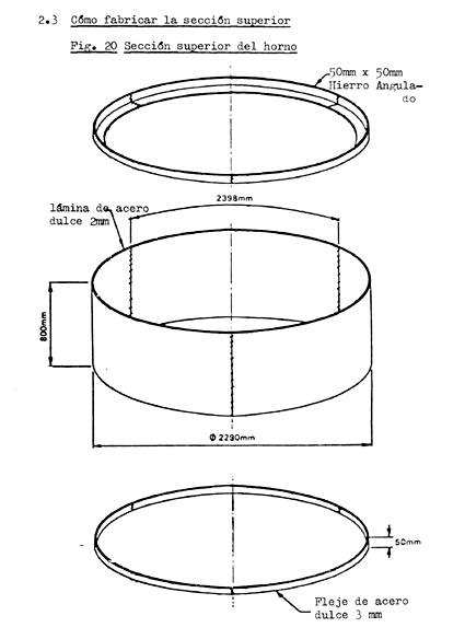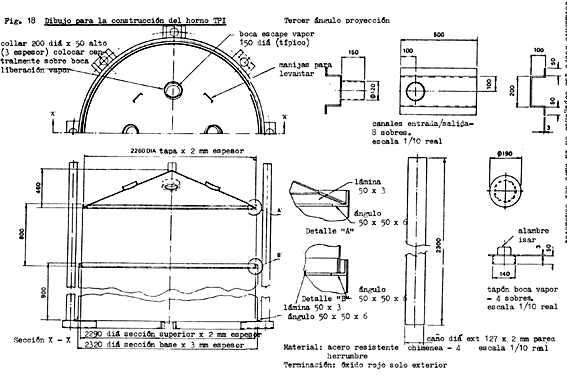 Siguen las instrucciones para la construcción y el ensamble. La Fig. 18 es un dibujo dimensionado para la construcción. Leer bien las instrucciones antes de iniciar la construcción del horno.