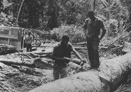 In most tropical countries of West Africa, forests were exploited during the past 20 years mainly at the initiative of private companies and on the basis of their reaction to the situation of international markets for tropical timber. Only a very small part of standing timber volume was exploited, and fellings did not exceed one to three high-value trees per hectare. This practice involved continuous migration of the forest work sites and of the camps and villages that depended on them. To keep up activities, new forest areas had to be opened up at a fast rate. As a result, log production centres shifted quickly from one region to another or even from one country to another. In the medium and long term, this practice, due to inconsiderate and uncontrolled utilization, threatened to result in under-utilization of raw-material resources and in great instability for the forest economy.