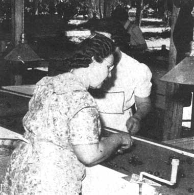 En 1944 las fábricas de California produjeron aproximadamente 500 millones de pies cuadrados de taller de tabletas 4 para la agricultura (1.18 m3 de madera aserrada) de 588 millones de pies cuadrados de taller (1.39 millones de m3) de madera aserrada. Sin embargo, no toda la producción de tabletas de California fué para uso local. Alrededor del cinco por ciento, o sean 25 millones de pies cuadrados de taller (0.06 millones de m3) de madera aserrada se enviaron a consumidores radicados en los estados de Utah, Nevada, Nuevo México, Colorado, Arizona y Texas.