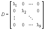 where D is a diagonal matrix. Matrix D has the eigenvalues of P in the diagonal.