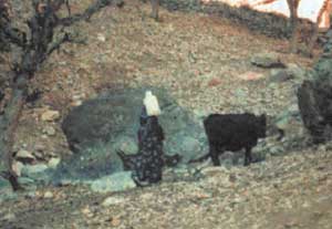 The water needs for people, agriculture and livestock are met by springs. Waste water is stored in tanks around 6x4x1 metre and is used for irrigation of walnuts and vegetable gardens, mostly at the household level.