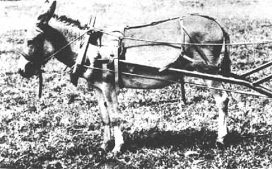 As a tentative improvement, the collar harness was adapted for donkeys and for oxen with a provision for a wide range of adjustments for the size of the animal. After testing for several months the following were considered as strong points for the harness: