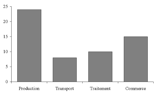 La production des produits forestiers se déroule le plus souvent en plusieurs étapes, le processus commençant avec la récolte des matières premières dans la forêt et s’achevant avec la vente du produit fini. Des recettes peuvent être collectées à un ou plusieurs de ces stades. C’est là le deuxième facteur qui explique les variations considérables entre les régimes fiscaux forestiers en vigueur dans les différents pays africains.
