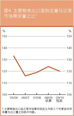 基于当前对2009/10年度贸易前景的展望,在主要出口国中,预测只有美国的出口量将有大幅增长,而澳大利亚、加拿大和欧盟的出口量则很可能稳定在上年度的水平上。阿根廷的外销量可能大幅下滑,原因是产量下降造成供应缺口。预计出口量下降的还有俄罗斯联邦(大麦)和乌克兰(玉米),主要原因是今年减产。