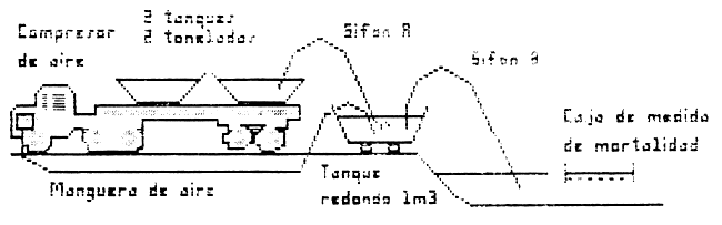 b.- Colocar los tanques de aclimatación. Los de mejor forma para tener un error minimo del conteo de la larva son los redondos.