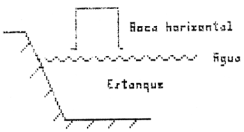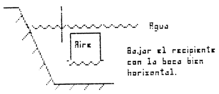 b) Bajar el recipiente con la boca bien horizontal a un nivel de 40 cm por debajo de la superficie del tanque
