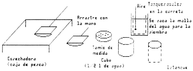 Remover el agua del tanque y sacar muestras de 1 l (5 veces por tanque) y reportar la cantidad de larvas contadas en el volumen exacto de agua.