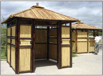 | A pesar de que la demanda de algunos productos tradicionales, como las cestas y esteras de bambú, ha disminuido, han surgido otros mercados emergentes; por ejemplo, estas estructuras de bambú, que se fabrican en China y se venden en el Reino Unido, se utilizan como gazebos para bañeras térmicas o como protección para trabajos de jardinería o actividades de ocio. |