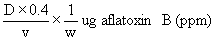 This factor is used in calculating the aflatoxin content as follows,