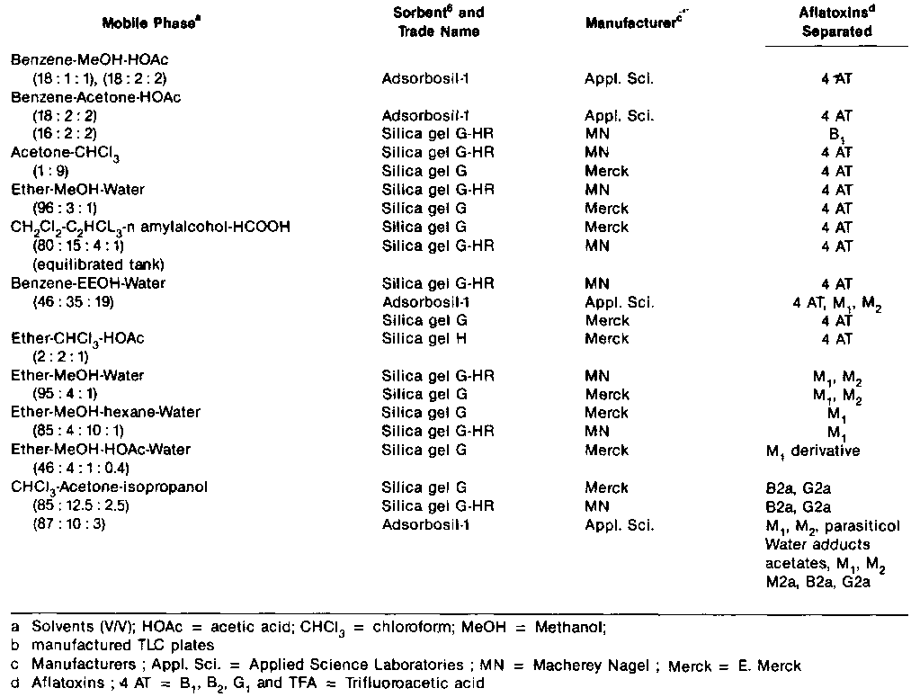 Table 1. Mobile Phase and Sorbents for Thin Layer Chromatography of Aflatoxins