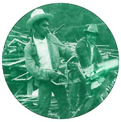 | mujeres tailandesas regando plantas jóvenes en un vivero | hombres guatemaltecos serrando leños destinados a la venta |