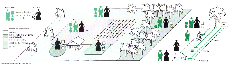 Sin embargo son las mujeres las que controlan todas las actividades de elaboración aunque no administran las regiones de donde vienen las materias brutas que requieren, gran parte de las cuales provienen de los campos, pastos y bosques que están bajo el control de los hombres. Por esto es por lo que las empresas de torta de mandioca se han visto restringidas por la falta de leña, y el trabajo artesanal que practican las mujeres sufre las consecuencias de una carencia de materia bruta (frondas de palmera) conforme los hombres van talando las palmeras para venderlas. Si se va a actuar conforme con los intereses de todos los que se aprovechan de los productos forestales los proyectos forestales tienen que analizar los papeles que desempeñan los hombres y las mujeres dentro de la explotación de ellos.