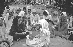 The experts at the 1984 FAO Consultation indicated that "people-oriented and sustainable development can only realize its full potential if rural people are involved and motivated and if information and knowledge are shared. Sharing is not a one-way transfer of information; it implies rather an exchange between communication equals. On the one hand, technical specialists learn about people's needs and their techniques of production; on the other, the people learn about the techniques and proposals of the specialists." This means that participatory communication efforts with rural women should begin with development planners and technical specialists listening to them. Lstening goes beyond a simple appraisal of needs. It involves listening to what women already know, what they aspire to become, what they perceive as possible and desirable and what they feel they can sustain.