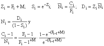 En particular, si F y M son constantes, la tasa de supervivencia viene dada por la relación de las capturas en dos intervalos sucesivos.