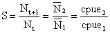 La fórmula sigue siendo válida con el número de ejemplares medio durante dos intervalos de tiempo sucesivos. Estos efectivos medios pueden reemplazarse por índices de abundancia proporcionales a los mismos por una constante “q” próxima, como las cpue en número. Si se admite que los números en una cohorte decrecen de manera exponencial en función del tiempo, se obtiene