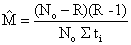 que es equivalente a la tasa de explotación de Ricker cuando T = 1. R es el número total de recapturas obtenidas en la experiencia de duración T.