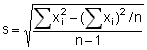 This is the most commonly used measure of the spread or dispersion of data around the mean. The standard deviation is defined as the square root of the variance (V). The variance is defined as the sum of the squared deviations from the mean, divided by n-1. Operationally, there are several ways of calculation: