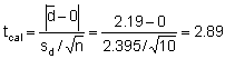 The t-test for significance is as follows: