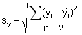 A practical quantification of the uncertainty is obtained by calculating the standard deviation of the points on the line; the "residual standard deviation" or "standard error of the y-estimate", which we assumed to be constant (but which is only approximately so, see Fig. 6-4):