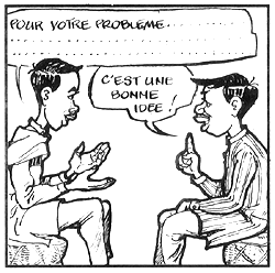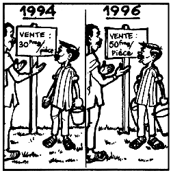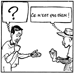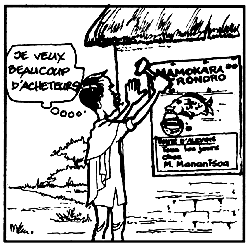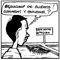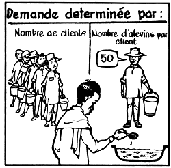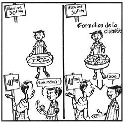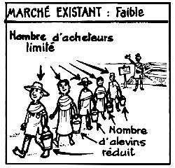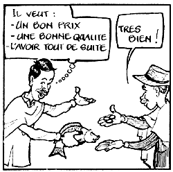 ![]() | Un client n'achètera pas un produit si sa demande n'est pas satisfaite, p.e. un paysan qui veut avoir de gros poissons frais ne voudra acheter ni des petits ni des poissons non frais. Aussi, pour toute transaction, faut-il bien tenir compte des exigences du client afin que les produits/articles offerts correspondent bien à sa demande. |