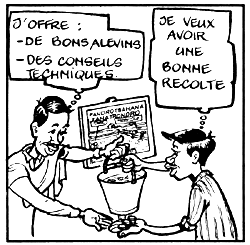à payer. Cela rendra la ferme piscicole plus rentable. Exemple: le rizipisciculteur voudrait s'assurer d'une bonne récolte. Le producteur qui lui donne de bons conseils techniques et de bons alevins est sûr d'avoir un client satisfait qui reviendra acheter plus d'alevins parce qu'il sait que cela constitue un bon investissement. |
