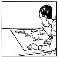 ![]() | En se basant sur les données établies, il faut faire le choix de la méthode de vulgarisation appropriée et du meilleur matériel d'appui afin d'atteindre les objectifs visés pour le groupe cible déterminé. |